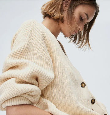 This snuggly soft Cloud Relaxed Cardigan serves a relaxed fit, with saddle shoulders—where the armhole seams curve towards the neckline so that the sleeve seamlessly hugs your shoulder